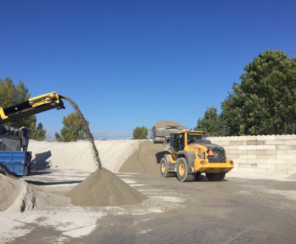 We hebben altijd grote hoeveelheden menggranulaat, betongranulaat, asfaltgranulaat, ophoogzand en vulzand op voorraad.