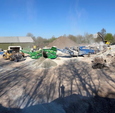 Hier wordt meng- en betonpuin op diverse fracties gebroken.
