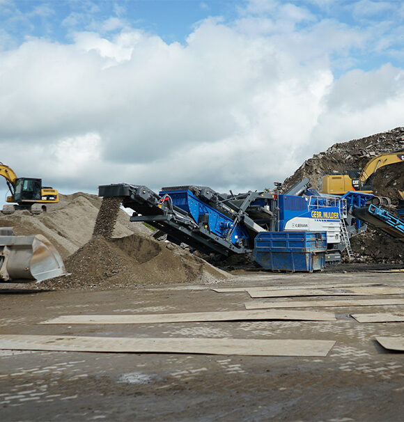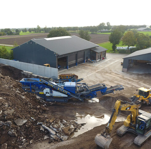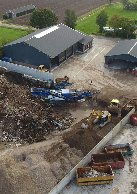 Op onze eigen inzameling in Kootwijkerbroek recyclen we flinke hoeveelheden (ca. 5.000 ton) puin met onze breekinstallaties. We breken en zeven tot verschillende fracties, zodat het weer hergebruikt kan worden. Dit doen we voor particulieren, aannemers en wegenbouwers.