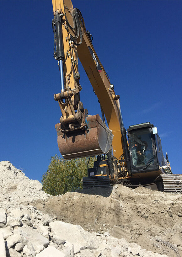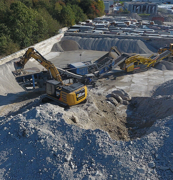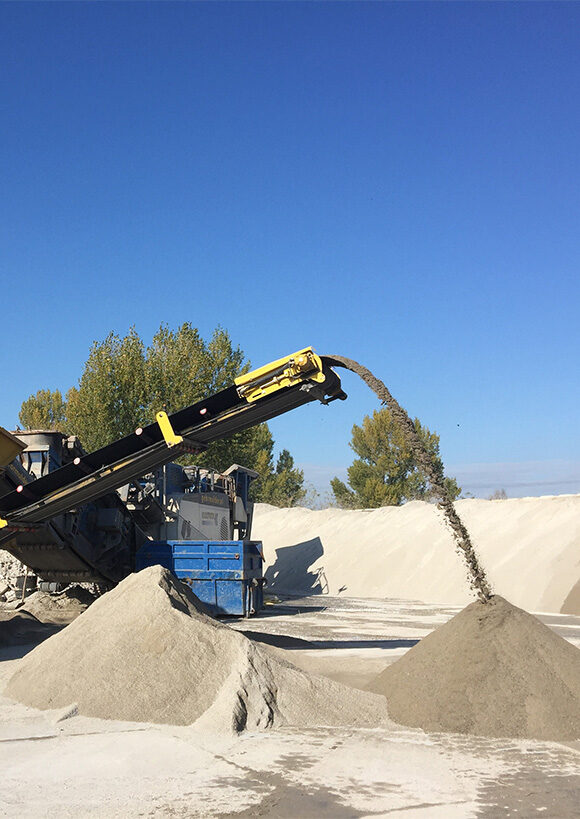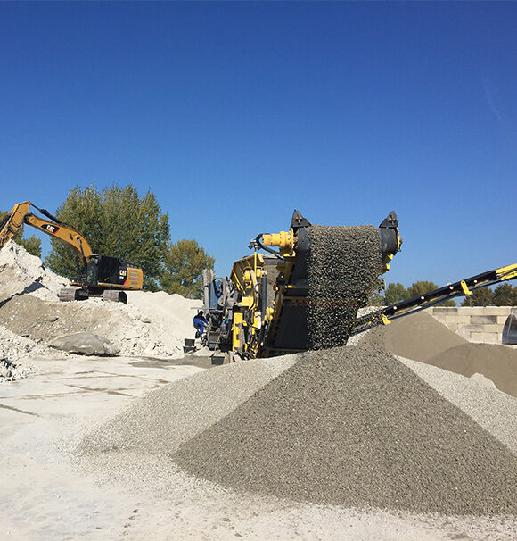 In Zeewolde hebben we circa 3.000 ton betonpuin ter plaatse gebroken tot een fractie van 4/16mm met de mobiele puinbreker.
